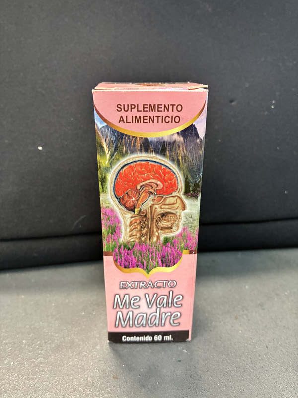 “Me Vale Madre” extract is a herbal dietary supplement designed to reduce stress, anxiety, tension headaches, insomnia, and irritability, often marketed as a natural calming aid. It typically contains a blend of herbs like passionflower, valerian root, and linden. Important: The FDA has advised against using this product due to potential hidden drug ingredients. Key Benefits and Uses: • Stress & Anxiety Reduction: Helps calm nervous tension and manage daily stress. • Sleep Aid: Promotes relaxation to fight insomnia and improve sleep quality. • Pain Relief: Often used to alleviate migraines and tension headaches. • Mood Support: Assists with emotional balance, reducing irritability and bad temper. Ingredients and Formulation: • Main Ingredients: Generally includes passionflower, valerian root, linden flower, lemon balm, chamomile, orange blossom, and mint. • Formulation: Available as liquid drops (extract) or capsules, usually administered orally (e.g., 40 drops in water 3 times a day). Warnings and Precautions: • FDA Warning: In September 2025, the FDA advised consumers not to purchase or use this product, citing that it may contain hidden ingredients that can be harmful. • Safety Advice: Consult a doctor if you experience side effects. • Side Effects: Potential for interaction with other medications; prolonged use is not recommended. Note: The product is manufactured under several labels including GN+Vida and Natural de Mexico.