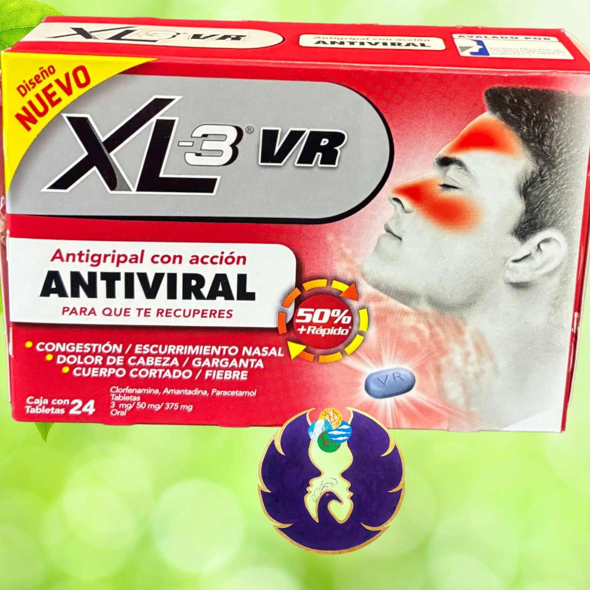 XL-3 VR is an antigripal antiviral medication designed to treat common cold and influenza type A symptoms, such as fever, nasal congestion, and body aches. Its key benefit is a combination formula, often including Amantadine, which offers antiviral action to address the source of infection rather than just masking symptoms, along with antihistamine action for quick relief. Key Benefits of XL-3 VR • Active Antiviral Action: Contains amantadine hydrochloride, which is known for targeting the Influenza A virus. • Comprehensive Symptom Relief: Treats congestion, sneezing, runny nose, fever, and body aches associated with cold and flu. • Fast Acting: Formulated for quick absorption to address illness, often with a non-drowsy or low-drowsiness profile. • Usage: Typically used by adults and children over 12, with dosage instructions recommending 2 tablets every 4 hours. Important Safety Information • Side Effects: Potential side effects include dizziness, fatigue, nausea, palpitations, and elevated blood pressure. • Interaction Warning: Avoid alcohol as it may increase drowsiness. Always follow the instructions on the package and consult a doctor if symptoms persist.